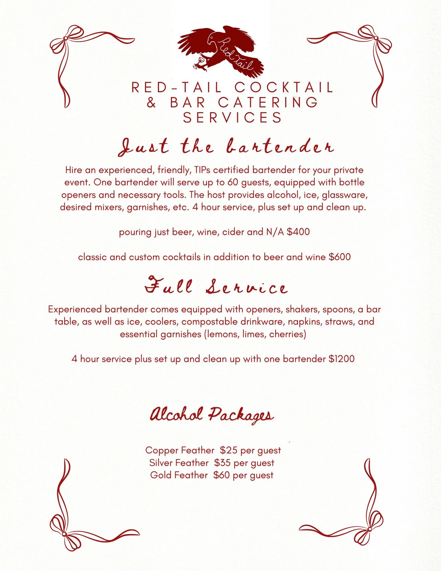 Forno Rosso is now offering bar services! Fill out the form below to get more information about our new mobile bar, affectionally named Red Tail Bar